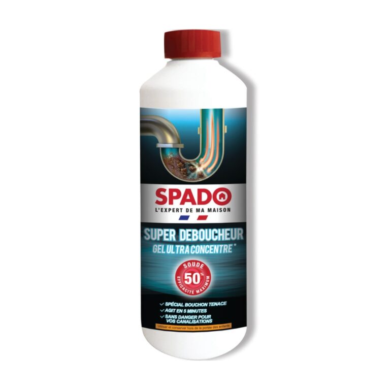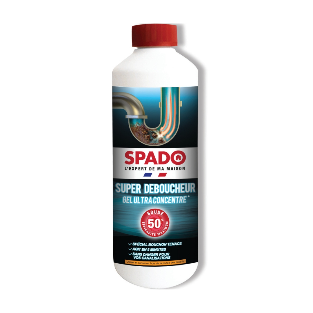 SPADO SUPER DEBOUCHEUR, un gel ultra concentré à base de soude pour déboucher les canalisations.