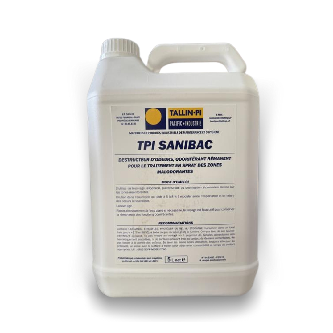 TPI SANIBAC est un nettoyant concentré surodorant, destructeur d’odeurs avec effet insecticide.