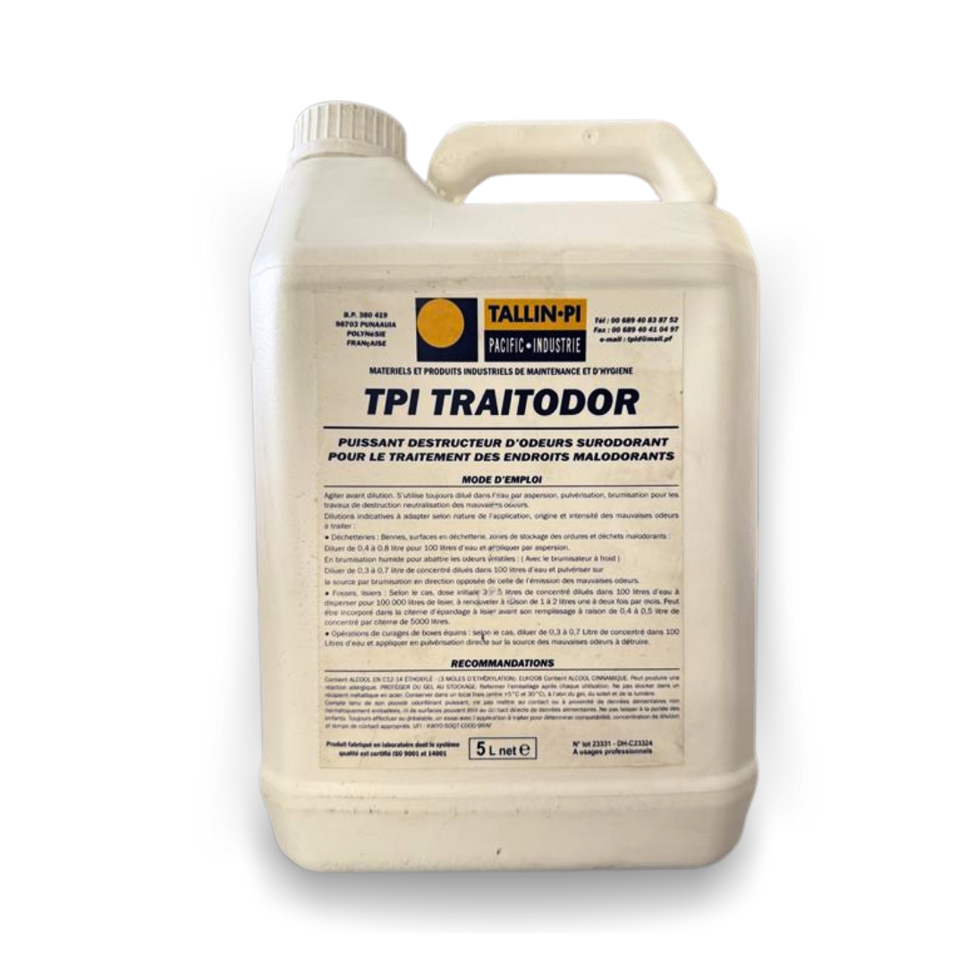 TPI TRAITODOR est un destructeur d’odeurs concentré, à base végétale, neutralise efficacement les nuisances olfactives.