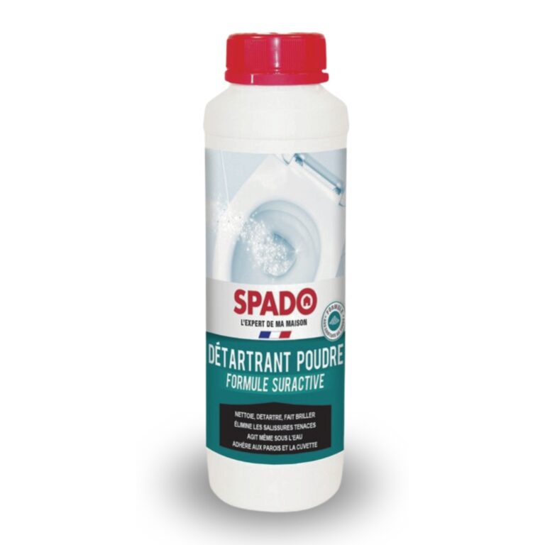 SPADO DÉTARTRANT POUDRE WC, poudre nettoyante, nettoie, détartre et fait briller. Élimine salissures tenaces, mousse active, sans danger pour fosses septiques.