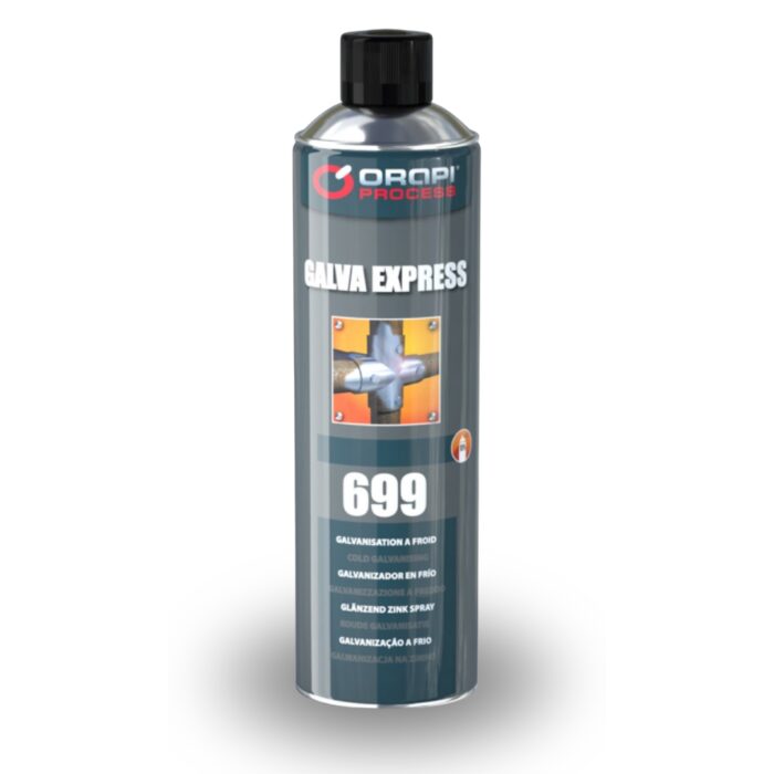 GALVA EXPRESS est une peinture anticorrosion à base de poudres métalliques, conçue pour la retouche et la protection de toutes pièces métalliques. Elle offre un séchage rapide, une passivation efficace de la surface, et un aspect métallisé brillant proche de l’inox. Sa formule assure une bonne résistance aux intempéries, à la corrosion et à de nombreux produits chimiques (hors acides forts), tout en étant propulsée par un gaz ininflammable.