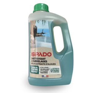SPADO NETTOYANT SOL est un nettoyant écologique formulé à base d’algues brunes biosourcées, récoltées en Bretagne. Il nettoie, dégraisse et fait briller les sols tout en éliminant les odeurs. Adapté aux carrelages, pierres naturelles et béton ciré, il contient 94,1 % d’ingrédients d’origine naturelle et possède un pH neutre en dilution.
