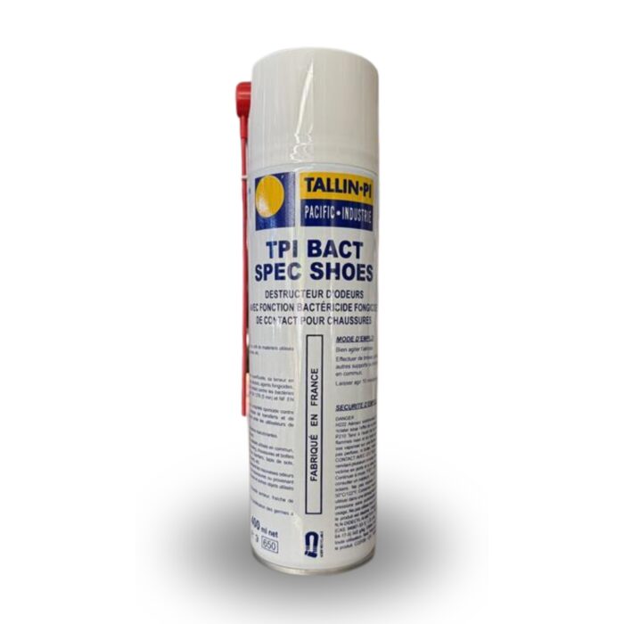 TPI BACT SPEC SHOES est un aérosol destructeur d’odeurs prêt à l’emploi, doté de fonctions bactéricides et fongicides. Il est spécialement conçu pour les objets utilisés en commun tels que les chaussures de sport, casques, gants, tapis, équipements de chantiers ou de salles de sport. Sa formule à base de sels d’ammonium quaternaires agit efficacement contre les germes responsables des contaminations dermiques, tout en apportant une senteur fraîche de menthe.