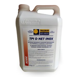 TPI D NET INOX est un nettoyant détartrant acide non inflammable, conçu pour éliminer les traces de tartres, oxydes, rouille et dépôts organiques sur les surfaces inoxydables, plastiques, faïences, carrelages, cuveries, circuits et matériels agroalimentaires. Il est utilisé dans les cuisines, ateliers vinicoles, laiteries, fromageries, industries des boissons et de transformation alimentaire.