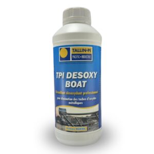 TPI DESOXYBOAT est un produit concentré fortement acide, miscible dans l’eau en toutes proportions. Il pénètre et solubilise instantanément les dépôts d’oxydes d’origine métallique (cuivre, fer, aluminium), les dépôts de calamine, de rouille, les dépôts d’origine calcique, les dépôts de carbonates calciques ou magnésiques, et les incrustations en couches sédimentées de silices. Grâce à sa teneur en tensio-actifs, il favorise l’élimination des dépôts graisseux de natures diverses. Ce produit est utilisé dans l’industrie, les services d’entretien des ateliers municipaux, la métallurgie, et les services de maintenance de la marine pour le nettoyage, le détartrage et le dérouillage des surfaces métalliques.
