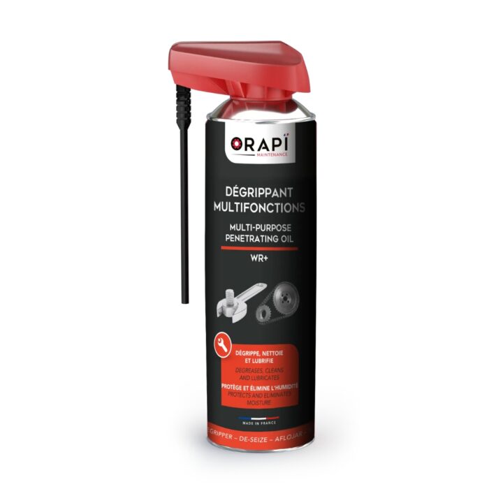WR + est un dégrippant multifonctionnel conçu pour les professionnels, offrant plus de 1 000 usages. Ce produit hydrofuge possède cinq fonctions principales : il élimine l’eau, nettoie, protège, dégrippe et lubrifie. Grâce à sa tension superficielle extrêmement faible et sa capillarité remarquable, WR+ s’insinue sous l’eau adhérente aux parois métalliques, formant un film isolant et protecteur contre la corrosion. Il permet également de dégripper les mécanismes rouillés et bloqués, sans provoquer de ré-oxydation même dans des conditions extrêmes.
